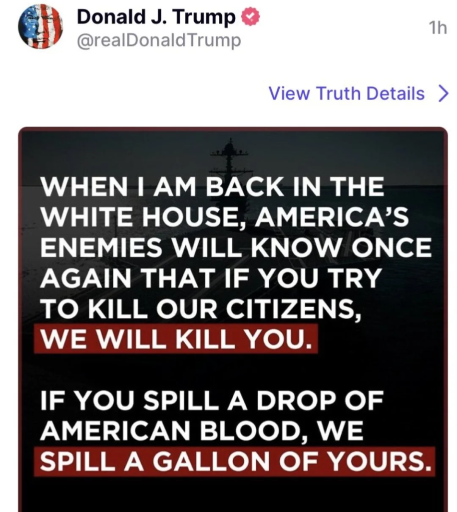 I do not see a qualification in Trump’s statement that pardons domestic enemies. If justice does not overcome treason, our options become clear once the war breaks out. Is 128 traitors for each patriot a just compensation?