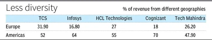 The Indian IT industry has recorded exceptional growth rate in the past few decades. However, the IT industry’s overarching reliance on Europe and US markets could up end creating disruption (see table).
