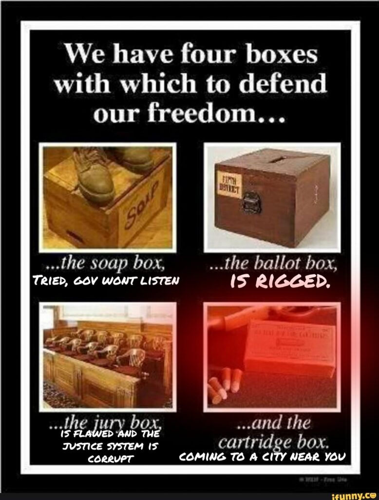 Lol! That reminds me of one of those, “Wanted Dead or Alive” posters of the old West. And no, to hell with voting. I am tired of people using the phrase, “it’s the patriotic thing to do”, or, “patriotism means……”. Fuck those people. Like saying the Constitution is a “living document”. Who says?? Did the Founders say anything about it being a living document?? They wouldn’t even know what that means!! And Patriotism isn’t a “Living Word”. It doesn’t change with the times. No body in their right mind would think wearing a fuckin mask is “the patriotic thing to do”. If you wanna be the biggest pussy on earth, then maybe so. And the same goes with these politicians thinking they have the well being of the Country in mind. They don’t. Just like the Supreme Court didn’t have the well being of this Country in mind when it came to the 2020 election. Avoiding a decision due to potential violence is shirking their duty. No one likes violence, but if it is violence or this bullshit wokeism, give me a bowl full of violence every day, with 3 spoonfuls on top. The Constitution isn’t “living”. Neither is “Patriotism” it means what it did in 1776 just as our Constitution did a few years after that. Let’s get squared away with our arms, our resiliency, and our Father. And remember what Mike V said, when Democracy turns to Tyranny…the armed citizen still gets to vote”.